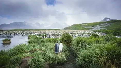En route to South Georgia, you now cross the Antarctic Convergence. The temperature cools considerably within the space of a few hours, and nutritious water rises to the surface of the sea due to colliding water columns. This phenomenon attracts a multitude of seabirds near the ship, including several species of albatross, shearwaters, petrels, prions, and skuas. - Day 7 - 10: South Georgia Journey